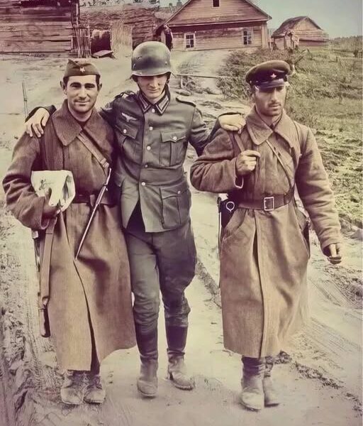 In einer Zeit, in der sich Millionen gegenseitig bekämpften und Hass gezielt geschürt wurde, erinnert dieses Bild daran, dass der Krieg nicht nur von Waffen, sondern auch von Entscheidungen der Einzelnen geprägt war. Die beiden sowjetischen Soldaten hätten den Verwundeten auch ignorieren oder schlechter behandeln können – stattdessen entschieden sie sich für Empathie.