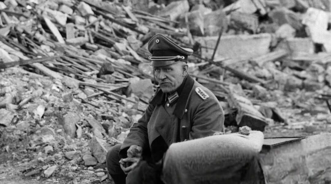 Während ringsherum amerikanische Soldaten weiterziehen, während Pläne für den Wiederaufbau und die Nachkriegsordnung geschmiedet werden, bleibt dieser eine Mann kurz zurück – ein Überbleibsel eines dunklen Kapitels, verloren in einer Landschaft aus Schutt, Erinnerung und unausgesprochener Schuld.