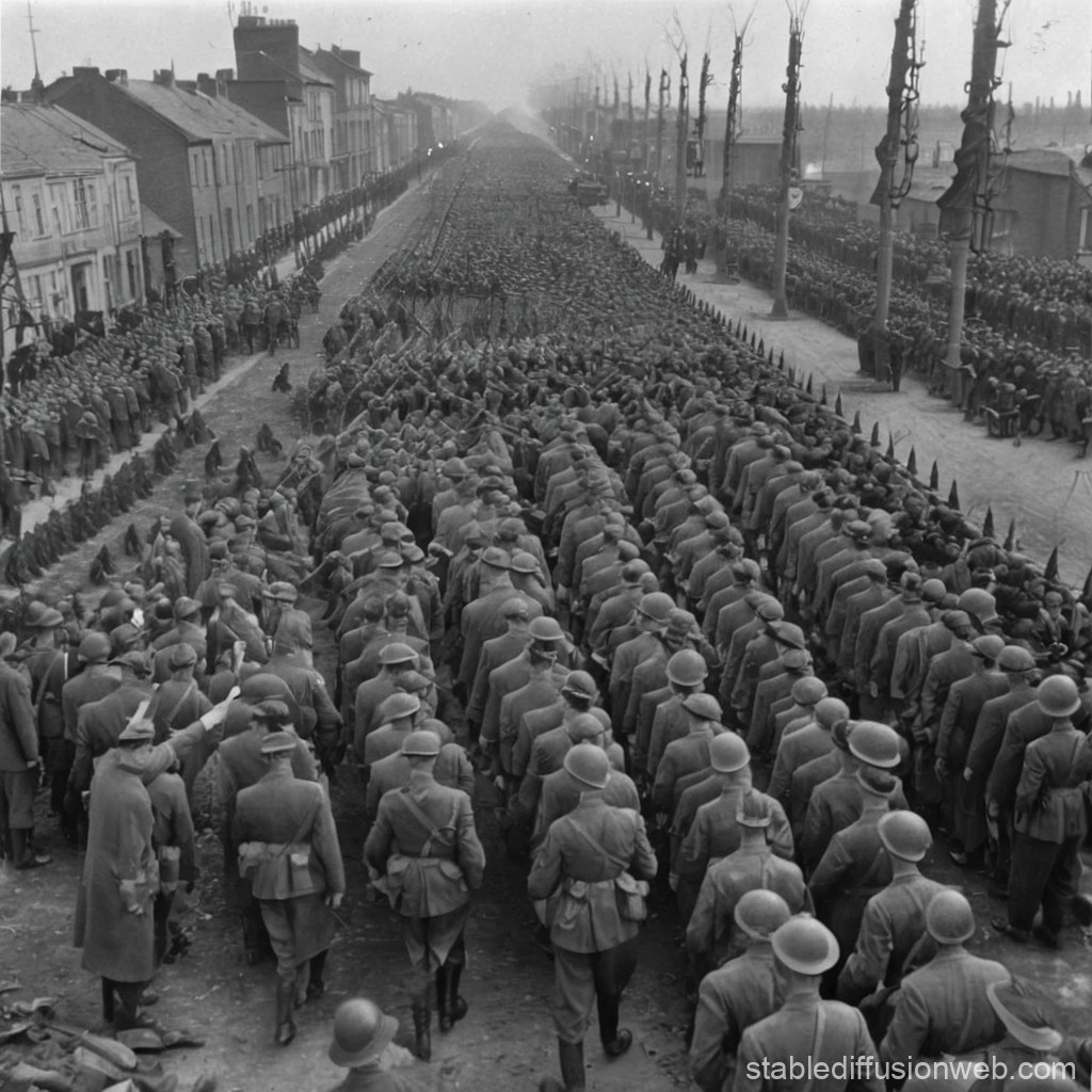 Kriegsende 1945 – Deutsche Soldaten auf dem Weg in die Gefangenschaft. H
