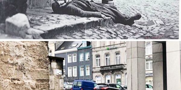 Damals Krieg, heute Alltag: Ein deutscher Straßenwinkel im Wandel der Zeit – ein Bild, das unter die Haut geht.H