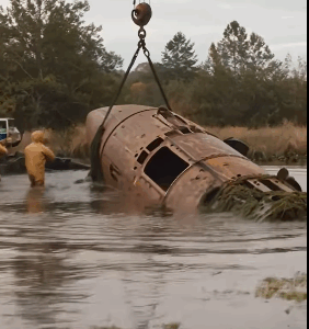 Sensation in Mecklenburg: Ein verschollenes deutsches Flugzeugwrack aus dem Jahr 1944 wird nach 80 Jahren aus dem Sumpf geborgen!.H