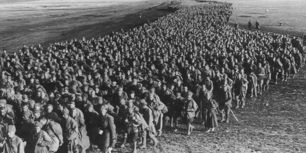Tausende deutsche Kriegsgefangene im Kriegsgefangenenlager Nonant-le-Pin nach den Kämpfen um den Kessel von Falaise, bei denen über 30.000 Deutsche gefangen genommen wurden. Alle diese deutschen Kriegsgefangenen wurden nach der Schlacht um den Kessel von Falaise gefangen genommen. Am Abend des…
