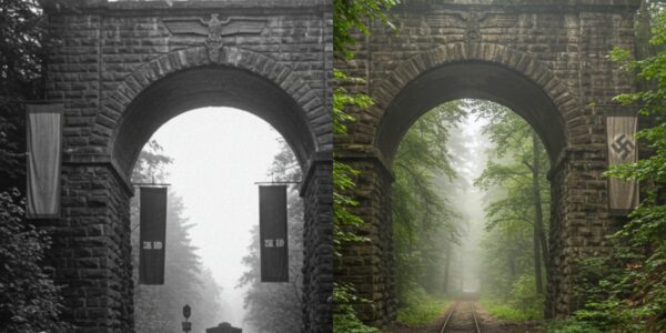 Auf den ersten Blick wirkt der Ort unscheinbar. Ein steinernes Tor, überwachsen von Moos, dahinter ein schmaler Schienenstrang, der sich im dichten Wald verliert. Vögel singen, feuchte Luft hängt zwischen den Bäumen, und nichts deutet auf die dramatischen Szenen hin,…