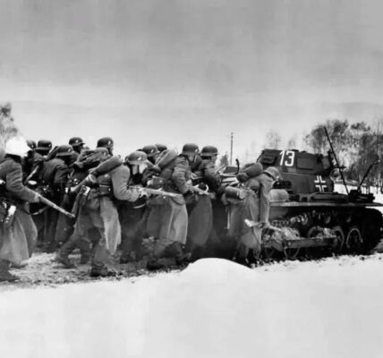 Der Winter an der Ostfront war gnadenlos. Für viele Soldaten bedeutete er nicht nur eine militärische, sondern vor allem eine existenzielle Herausforderung. Das hier gezeigte Bild dokumentiert eindrucksvoll die erschöpfte Ruhepause deutscher Soldaten irgendwo im tief verschneiten Osten – vermutlich…