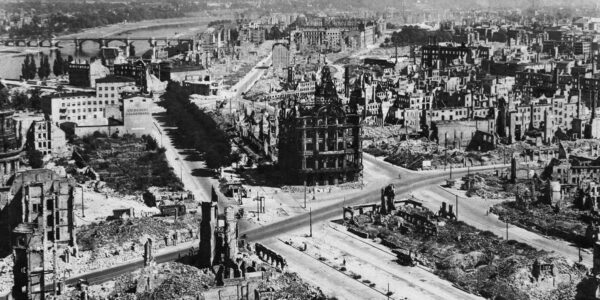 Wiederaufbau Dresdens nach den schrecklichen Bombenangriffen am Ende des Zweiten Weltkriegs, 1945–1970 .H