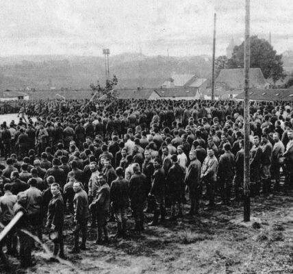 Der April 1945 markierte die letzten Wochen des Zweiten Weltkriegs in Europa. Während die Alliierten immer weiter ins Deutsche Reich vorrückten, ergaben sich Hunderttausende deutscher Soldaten, die in riesigen Kriegsgefangenenlagern untergebracht wurden. Eine beeindruckende Luftaufnahme aus dieser Zeit zeigt ein…
