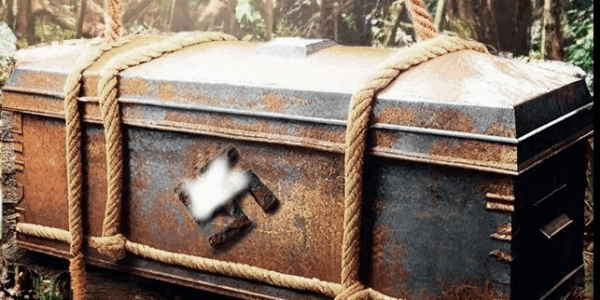 Mitten im tropischen Dickicht stießen Abenteurer auf einen Fund, der sofort Gänsehaut auslöste: ein massiver, rostiger Sarg, an dessen Seite verblasste Symbole aus der Zeit des Zweiten Weltkriegs zu erkennen sind. Fest mit dicken Seilen umschlungen, wirkte er, als sei…
