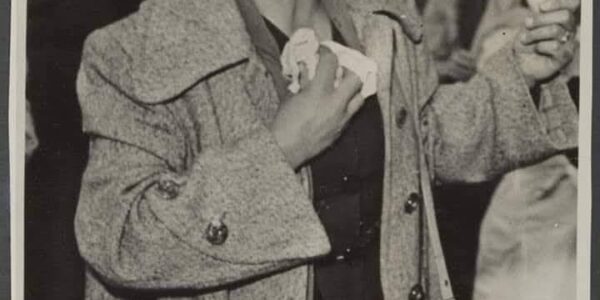 Die Suche nach ihrem Ehemann – Eine deutsche Frau hält das Foto ihres vermissten Mannes fest und durchstreift das zerstörte Land in der Hoffnung, ihn wiederzufinden. 💔📷 Ein bewegender Moment der Nachkriegszeit.H