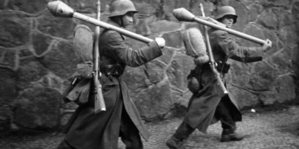 Straßenkampf-Vorbereitung – Deutsche Infanteristen mit Panzerfäusten im Einsatz (1945).H