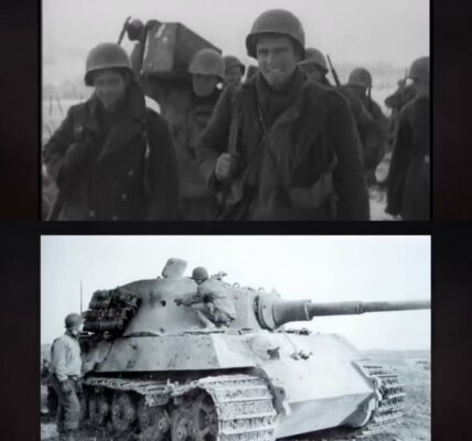 Dieses historische Foto zeigt eine Gruppe deutscher Soldaten inmitten eines eisigen Winters an der Front. Dicke Mäntel, gefütterte Mützen, erstarrte Gesichter – alles deutet darauf hin, dass die Kälte hier nicht nur eine Begleiterscheinung, sondern ein ständiger Gegner war. In…
