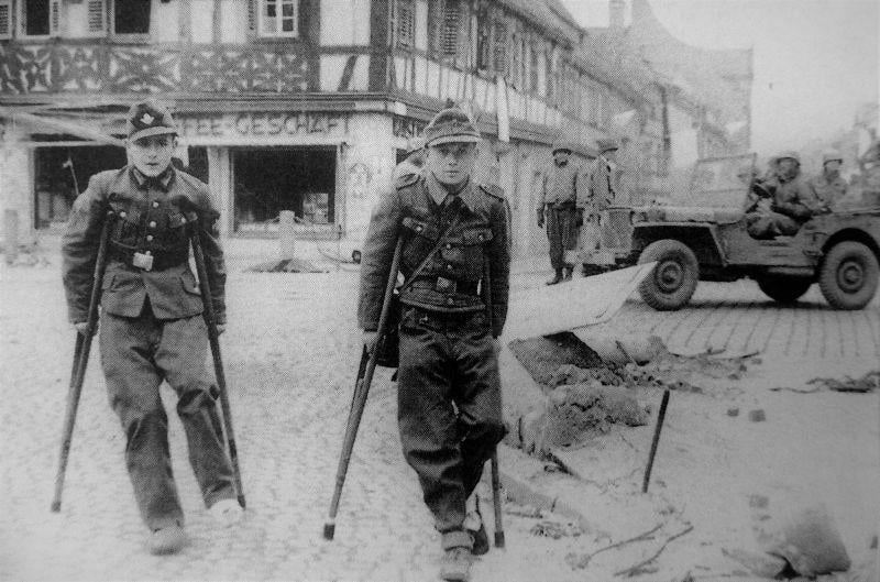Die letzten Tage an der Ostfront – Erschöpfte deutsche Soldaten auf dem Marsch in die Gefangenschaft, Winter 1945.H