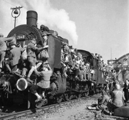 Ende eines Alptraums: Tausende deutsche Soldaten marschieren in Gefangenschaft – Deutschland, 1945 Der Zweite Weltkrieg neigte sich dem Ende zu. Es war der Frühling 1945, und das einst mächtige Dritte Reich zerfiel unter dem unerbittlichen Druck der alliierten Streitkräfte….