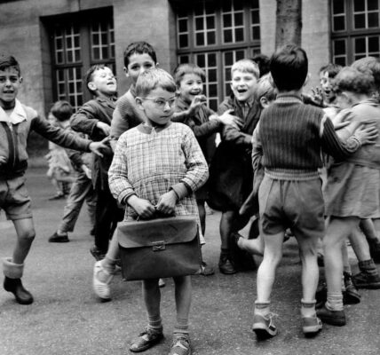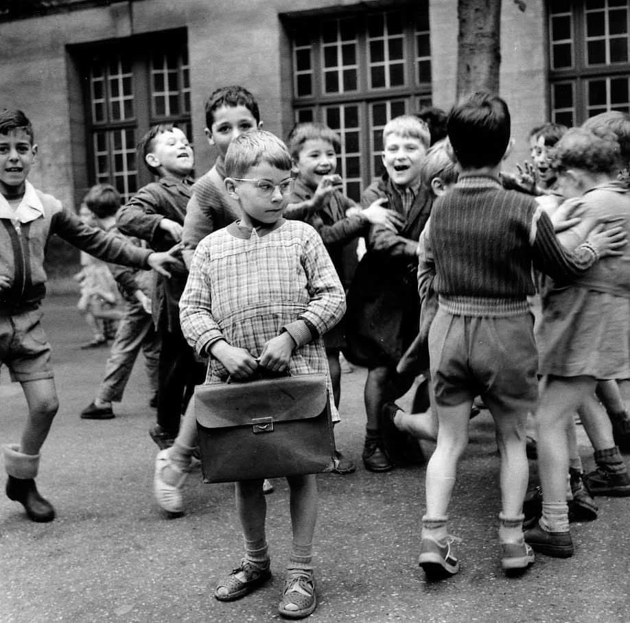 Skip to content Les petits Poulbots de Montmartre : Guylaine Guy entourée d’enfants au départ de la course au ralenti de la rue Lepic, 21 novembre 1956. Robert Doisneau. Arcueil, dimanche matin 1945. Banlieue de Paris Métro Bastille. Années…