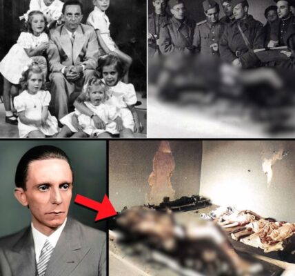 Inmitten des Chaos des Zweiten Weltkriegs, in einem Waldstück irgendwo an der Ostfront, wurde dieser stille Moment eingefangen: Eine Gruppe junger deutscher Soldaten steht schweigend um ein improvisiertes Grab. Ein einfacher Holzkreuz, ein Stahlhelm auf der Spitze, und ein kleines…