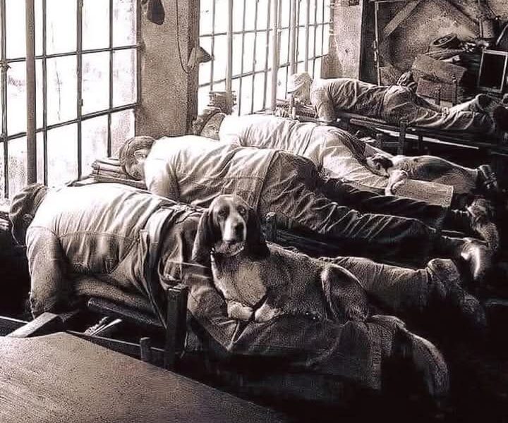 Curieusement, les travailleurs avaient également des chiens couchés sur leurs jambes pour se réchauffer, ajoutant un détail extravagant à cette pratique historique
