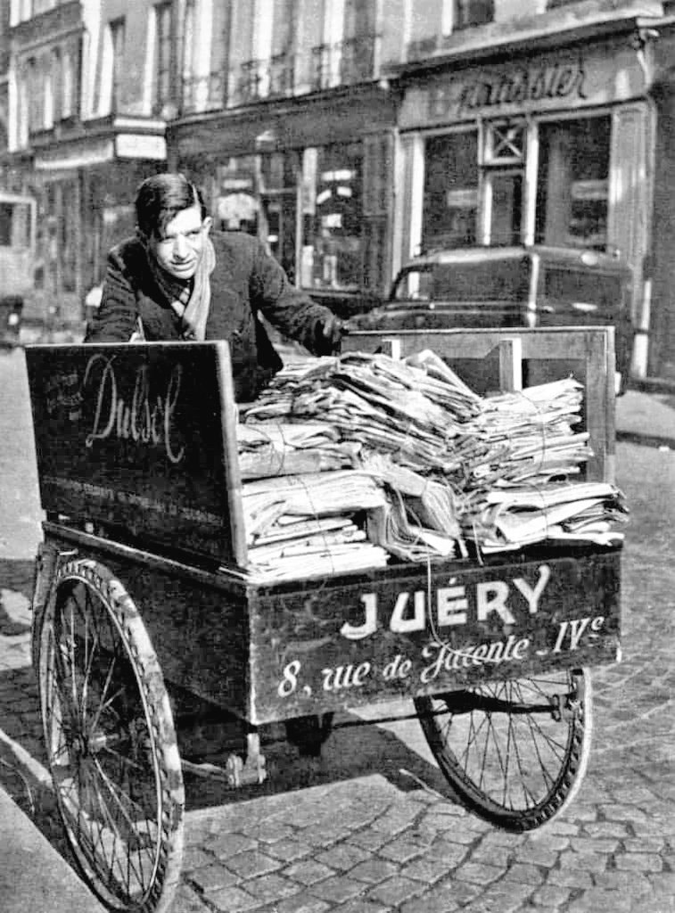 Juéry, ramassage de vieux journaux, 12 francs le kg.