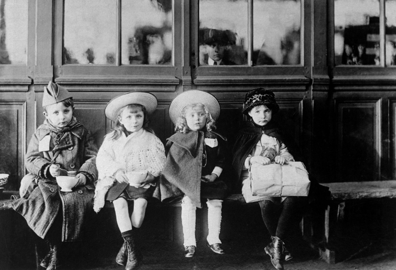 Enfants réfugiés français pendant la Première Guerre mondiale, en attendant le train – Histoire