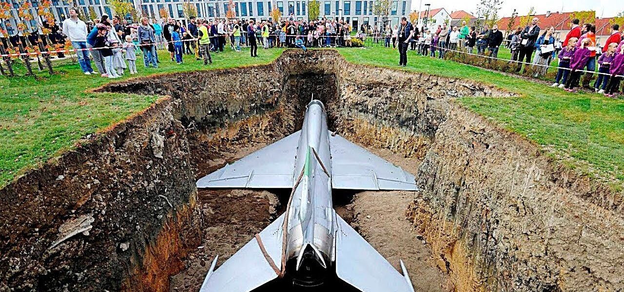 Als die Erdschichten vorsichtig abgetragen wurden, kam langsam der schlanke, rostige Körper eines Messerschmitt Bf 109 (vermutlich) zum Vorschein. Die Maschine lag mit der Nase tief im Boden vergraben, das Heck ragte schräg nach oben – genau so, als wäre sie im letzten Moment ihres Absturzes eingefroren worden. Jahrzehntelang hatte sie im Dunkel der Erde geschlummert, während über ihr neue Straßen, Häuser und Gärten entstanden.