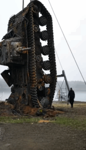 Die Bergungsarbeiten stellten das Team vor große Herausforderungen. Das Fahrzeug befand sich in einer nahezu aufrechten Position, eingeklemmt zwischen Erdschichten und alten Stahlträgern. Der Boden war durch jahrelange Feuchtigkeit instabil, sodass zunächst ein Sicherheitsrahmen errichtet werden musste, um den Schacht abzustützen. Erst danach konnte ein Spezialkran eingesetzt werden, der mit Hilfe mehrerer Seilzüge und Stützstrukturen den Panzer langsam an die Oberfläche hob. Der Moment, in dem das rostige Kettenlaufwerk vollständig sichtbar wurde, wurde von zahlreichen Fotos und Dokumentationen festgehalten – nicht aus Sensationslust, sondern als Teil der wissenschaftlichen Erfassung.