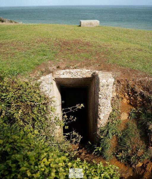 Spektakuläre Entdeckung: Verborgener Eingang zu einem deutschen Bunkersystem an der Omaha Beach-Steilküste.H