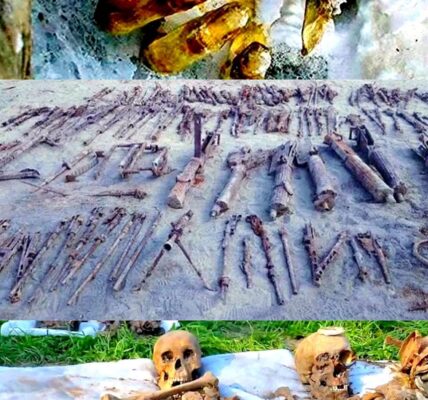 Mitten in einem ruhigen Feld irgendwo in Deutschland, weit entfernt von den Frontlinien, erhebt sich ein einfaches Holzkreuz. Kein Stein, kein Name, keine Inschrift – nur ein rostiger Stahlhelm, der seit Jahrzehnten vom Wetter gezeichnet wurde, thront stumm über dem Kreuz. Davor steht eine kleine rote Grabkerze, deren still flackerndes Licht gegen die Unvergessenheit kämpft. Es ist kein gewöhnliches Grab – es ist ein archäologischer Fundort. Und es ist ein Symbol.