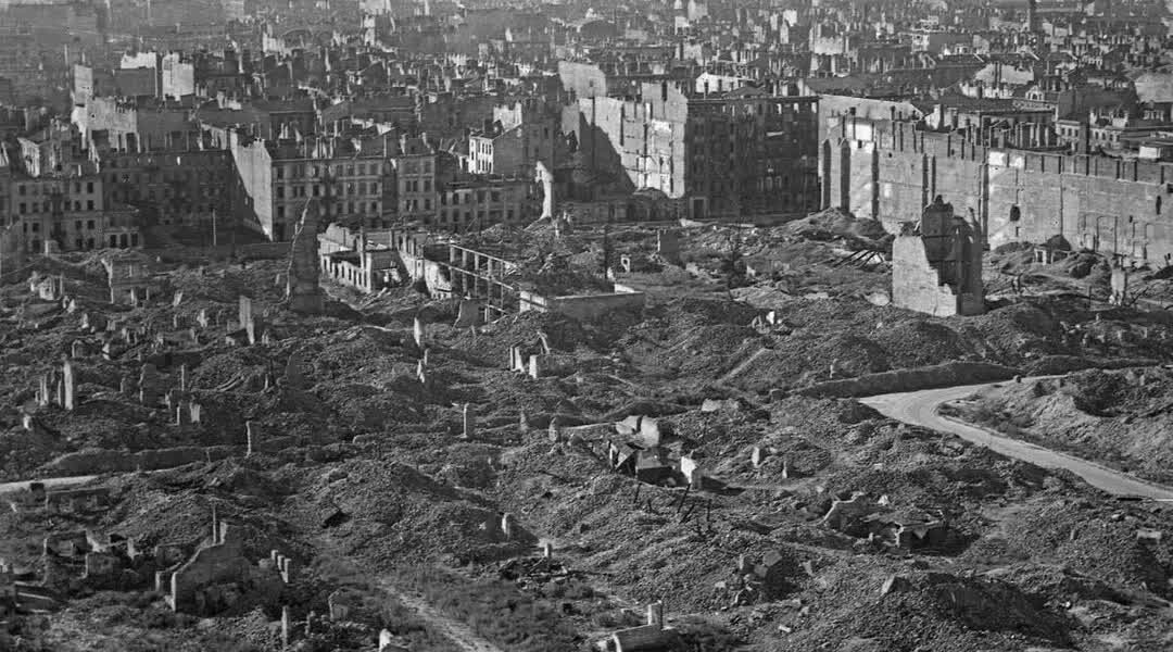 Wenn wir auf dieses Bild blicken, sehen wir nicht nur eine Stadt, die von Bomben, Feuer und Gewalt zerstört wurde, sondern auch ein Symbol für das Leid, das der Zweite Weltkrieg über ganz Europa brachte. Deutschland im Jahr 1945 war ein Land in Trümmern – buchstäblich und im übertragenen Sinn. Ganze Stadtviertel wurden ausgelöscht, Häuser zu Schutthalden zermahlen, und in den Straßen suchten Überlebende nach Angehörigen oder nach dem Nötigsten zum Überleben.