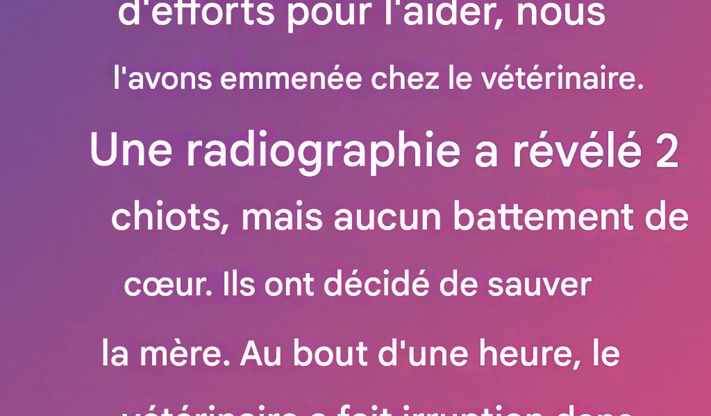 Nous attendions anxieusement dans le hall, priant pour qu’elle survive à l’opération. Le silence semblait interminable jusqu’à ce que, une heure plus tard, la vétérinaire fasse irruption dans la pièce, les yeux écarquillés et un immense sourire aux lèvres. « Vous n’allez pas le croire ! » s’exclama-t-elle, essoufflée. « Non seulement Luna est saine et sauve, mais nous avons réussi à ranimer un des chiots ! »