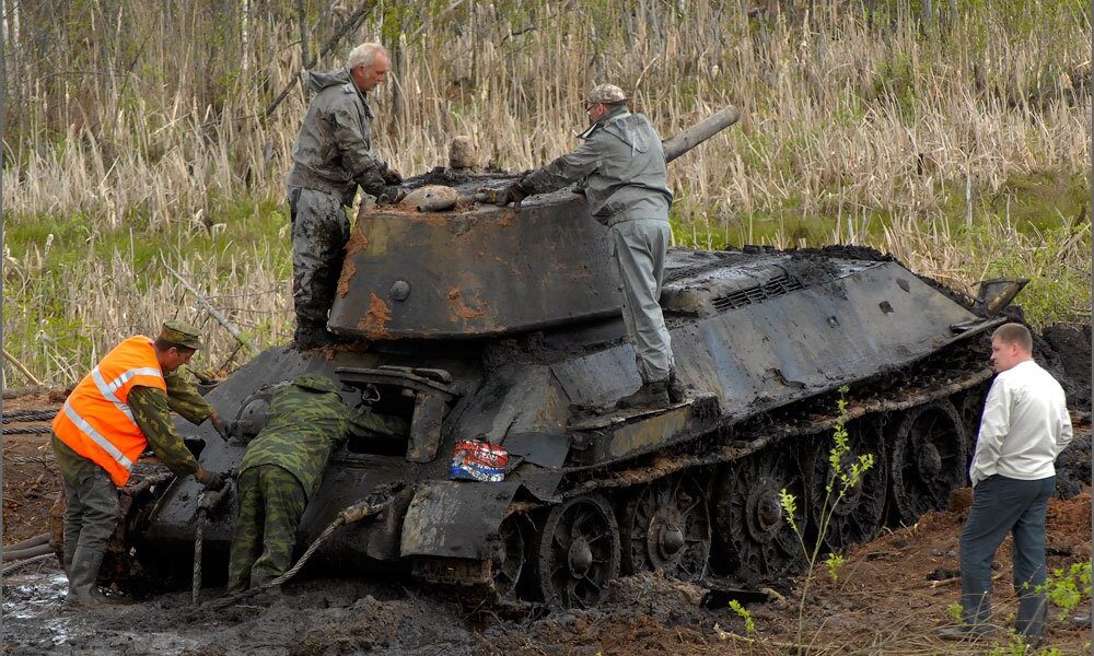 Der T-34 galt als Rückgrat der Roten Armee und war für seine Robustheit und Beweglichkeit gefürchtet. In diesem Fall jedoch wurde er zum stummen Zeugen einer vergessenen Tragödie. Die sterblichen Überreste der Soldaten befanden sich noch im Inneren – ein ergreifender Moment für die Bergungskräfte, die dem Wrack mit Respekt begegneten.