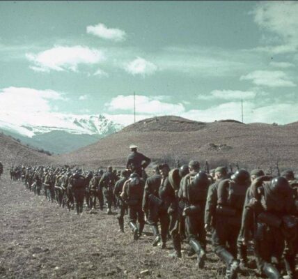 Während der Diktatur in Deutschland nutzte das Regime solche monumentalen Bauwerke, um Macht zu demonstrieren und Ideologie sichtbar zu machen. Stein und Stahl sollten Dauerhaftigkeit signalisieren; Embleme und Fahnen sollten die Unterwerfung der Bevölkerung verdeutlichen. Durch Aufmärsche, Reden und propagandistische Inszenierungen wurde jeder Stein politisch aufgeladen. Der gezeigte Torbogen diente vermutlich als repräsentativer Eingang zu einem militärischen oder paramilitärischen Komplex – ein Ort, der nicht nur funktionale, sondern vor allem symbolische Bedeutung hatte.