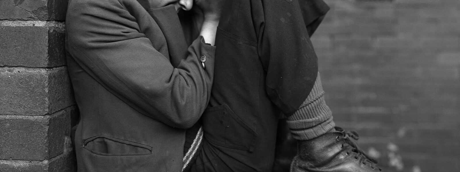 Der abgebildete Mann war vermutlich erst vor Kurzem aus der Kriegsgefangenschaft entlassen worden. Viele deutsche Soldaten, die den Krieg überlebt hatten, kehrten in eine völlig veränderte Heimat zurück. Häuser, die über Generationen hinweg Familien beherbergt hatten, existierten nicht mehr. Angehörige waren verschollen oder gefallen, Freunde und Nachbarn geflüchtet oder umgekommen. Für unzählige Heimkehrer bedeutete der erste Gang durch die vertrauten Straßen einen Schock, denn sie fanden nichts wieder, was an ihr früheres Leben erinnerte.